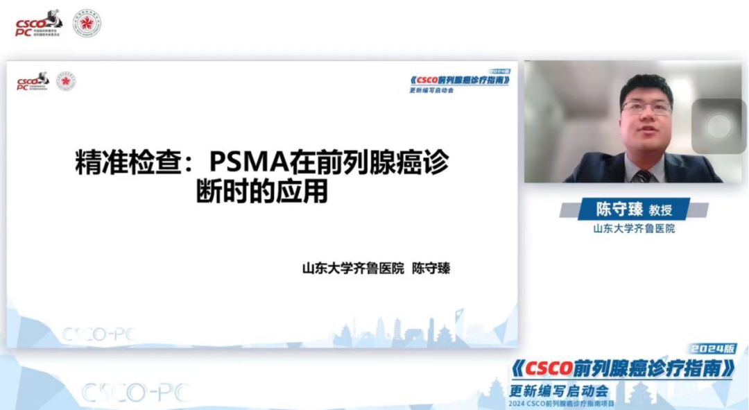 会议开始,由CSCO前列腺癌专委会主任委员、CSCO前列腺癌诊疗指南编写组组长、复旦大学附属肿瘤医院叶定伟教授做了精彩致辞:在指南全体编委的努力下,《CSCO前列腺癌诊疗指南》已成为我国前列腺癌领域最重要和最权威的参考指南之一,在过去的时间里非常感谢指南核心编委不曾懈怠,勤恳敬业,笔耕不辍地完成每年一度的更新工作,把最新、最前沿的医学证据纳入在指南中,并基于中国人群的循证医学证据,不断影响和指导中国前列腺癌患者的临床实践。2024版的更新工作,将继续遵循CSCO指南的核心精神,秉持“发病激增,早筛早诊;局限高危,治疗强化;更新场景,与时俱进;精准检查,丰富选择”的理念,将国内外前列腺癌诊疗的最新进展进行充分讨论,最终打造出最适合中国前列腺癌患者的指南!