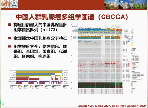 在此背景下,复旦大学附属肿瘤医院邵志敏教授和江一舟研究员团队与国内专家学者经过五年的不懈努力,系统地分析了他们的基因组、转录组、蛋白质组、代谢组学、放射组学和数字病理学等特征,在前期三阴性乳腺癌多组学图谱的基础上更进一步,建立了迄今为止规模最大的中国乳腺癌多组学自然队列,全面揭示了中国乳腺癌分子特征(中国人群乳腺癌多组学图谱CBCGA)。