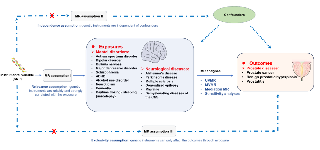 △通过孟德尔随机化研究分析神经精神疾病与前列腺疾病的因果关系
