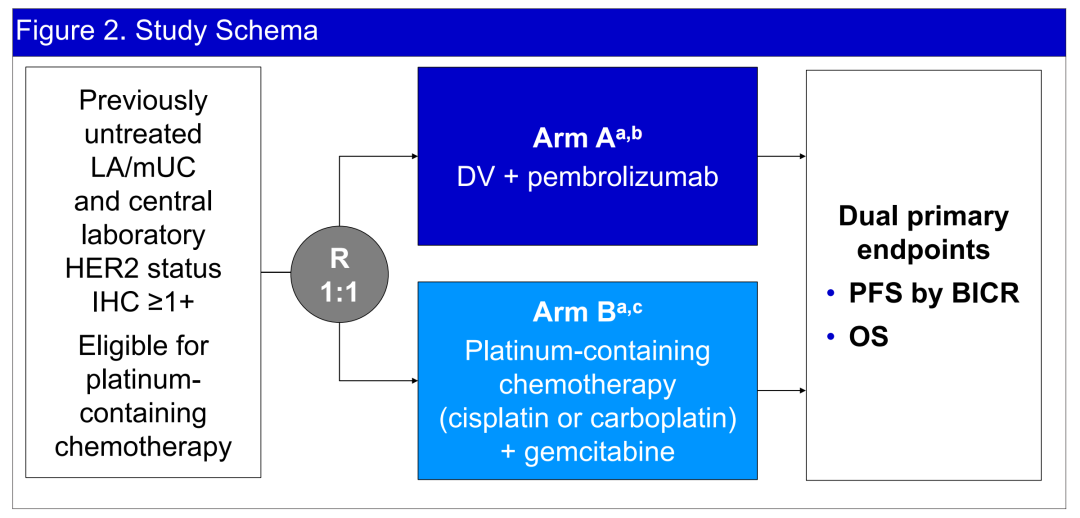 维迪西妥单抗联合帕博利珠单抗对比化疗在既往未经治HER2表达局部晚期或转移性尿路上皮癌患者中的Ⅲ期研究(摘要号:A0746)