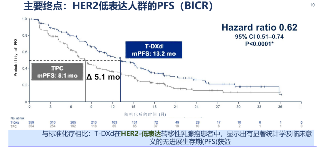 • 主要终点:盲态独立评审委员会(BICR)评估的HER2低表达人群的PFS。