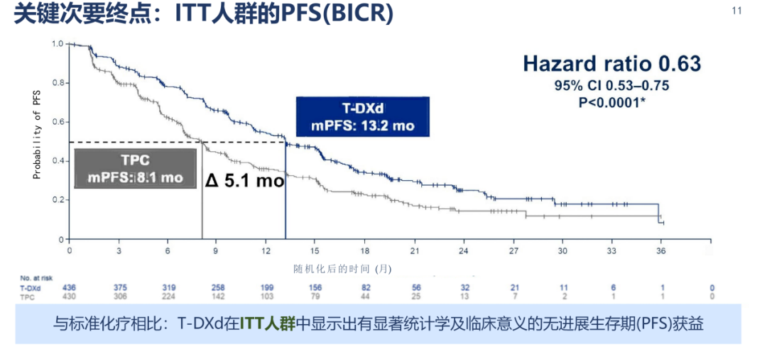 T-DXd(n=436)vs.TPC(卡培他滨、紫杉醇或白蛋白结合型紫杉醇,n=430)