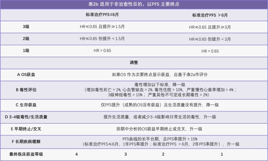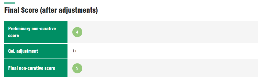△ESMO-MCBS治愈性和非治愈性治疗的评分等级