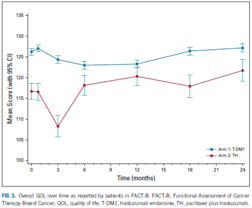 共同的主要终点是患者的iDFS,并比较T-DM1 vs TH的CRT发生率。关键次要终点包括使用FACT-B生活质量,使用RSCL和PNQ比较两组之间的症状,使用WPAI:SHP评估对工作效率和活动的影响,以及使用脱发问卷评估脱发的影响。