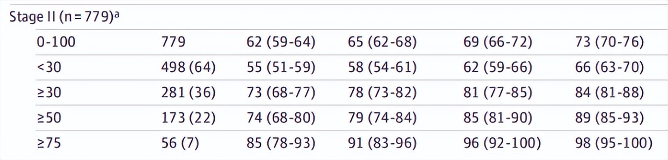 在1966例患者中包含779例Ⅱ期TNBC患者,Ⅱ期TNBC患者的5年iDFS率为62%(95%CI,59%-64%),RFS率为65%(95%CI,62%-68%),DRFS率为69%(95%CI,66%-72%),总生存率为73%(95%CI,70%-76%)。特别值得指出的是,TIL水平≥75%的56例患者5年iDFS率为85%(95%CI,78%-93%),RFS率为91%(95%CI,83%-96%),DRFS率为96%(95%CI,92%-100%),总体生存率为98%(95%CI,95%-100%)。