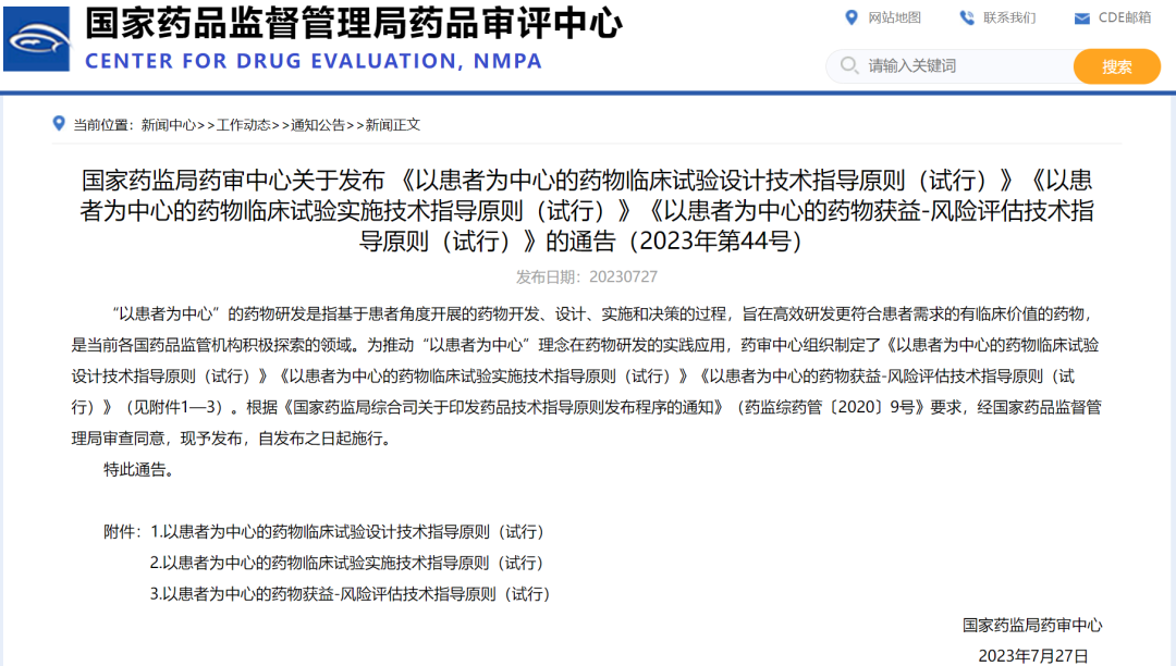 图1.CDE发布“以患者为中心”的临床试验指导原则