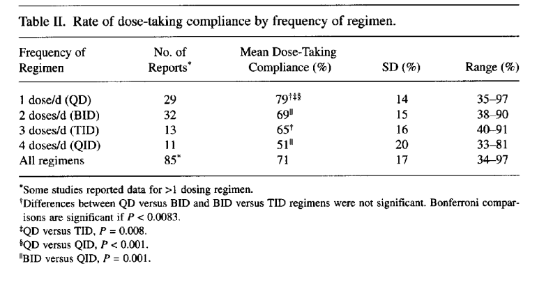 13.Claxton AJ,Cramer J,Pierce C.A systematic review of the associations between dose regimens and medication compliance.Clin Ther.2001;23(8):1296-1310.doi:10.1016/s0149-2918(01)80109-0